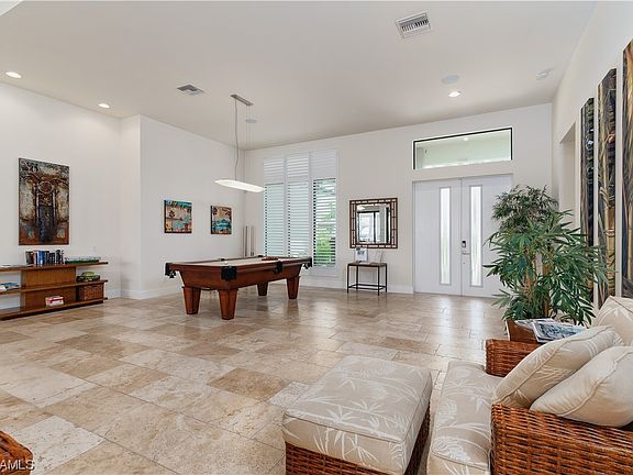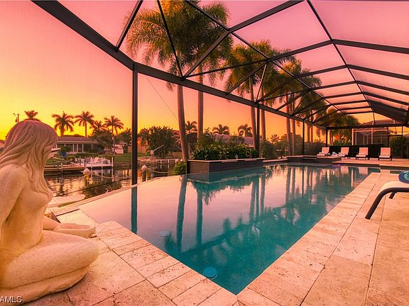 Waterfront Luxury & Direct Gulf Access in Minutes! Custom Yacht Club home featuring Fully Furnished 4 Bed 4.5 Bath and 3 Car Garage on a tipple lot. Luxury & sustainability with a Brand New $200K TESLA ROOF built to sustain high wind speeds, 25 yr warranty, and produces energy and income! Peace of mind & incredible efficiency. European designed home balancing modern architecture throughout 3652 Living Space, Travertine flooring, large open living room, and modern kitchen featuring Bosch appliances. Indoor and Outdoor seamless flow through large pocket impact sliders & windows. 900 SF Master suite w/ water views, luxurious bathroom, walk-in closets, open shower, tub, and “private garden” outdoor shower. All rooms have king bed, full suite bath and closet. Relax by the 42" heated saltwater infinity edge-pool with a waterfall feature. Nearly 1,800 SF patio! With travertine deck & entertainment space, seating, and sunbathing. Outdoor kitchen, wood ceilings, hidden storm shutters, outdoor shower, and surround sound! BOATERS 100 FT captains walk dock w/ wrap around deck, canopy, lift up to 33” boat. Lush landscaping & lighting. Digital 2 Zone A/C and Integrated 14 Sonos surround sound.