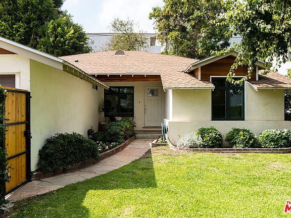 Built in 1955, this mid-century style home features vaulted open beam tongue and groove ceilings, a brick wood-burning fireplace, hardwood floors, large laundry room, and recently updated bathrooms. Den/office could easily be turned into a third bedroom with an en-suite bathroom. Located on a quiet cul-de-sac in Valley Village, this property is surrounded by mature hedgerows. Minutes to Whole Foods, Westfield Mall, and Ventura Blvd, this charming home is move-in-ready. Offers are due Tuesday, October 12th at 12pm noon.