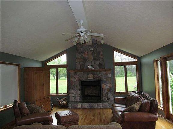 Fabulous lakefront home with so many living options. This home will work well for the busy, growing family, the family needing space for parents or even an excellent option for the couple wanting to run a Bed and Breakfast. The 5 plus bedrooms and 4 bathrooms give the new owners a home to be proud of. The expansive Living room has a stone fireplace with a panoramic view. The dining room has lovely wood floors and easy access to the deck overlooking the lake. The large kitchen offers classic oak cabinetry and a useful island bar. The laundry area is a large and functional workspace. There is a covered porch with stone accents and a 3 car garage. Don't forget the lakefront! 100 feet of sandy beach. This property is nestled in the corner of the lake keeping it a private setting. There is nice distancing between the road and the home and the home and the lake. This is a great property!