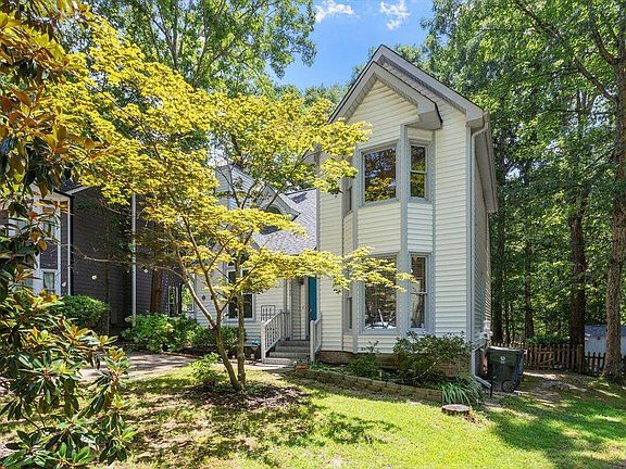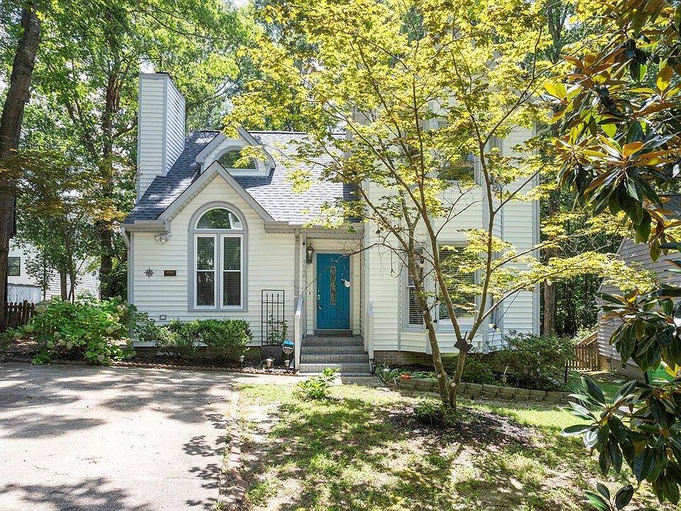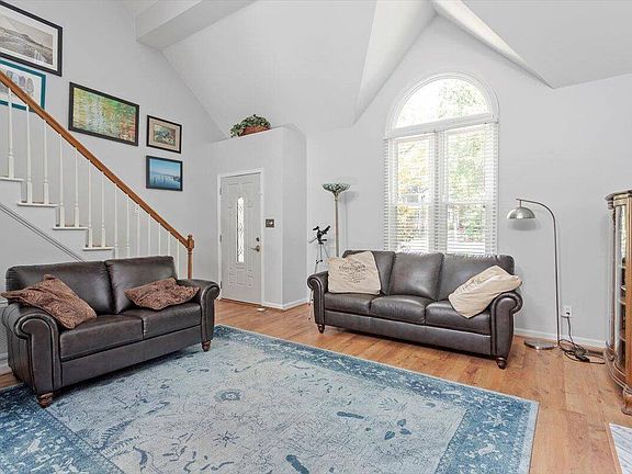 Charming well loved and immaculately maintained home on heavily wooded Cul de Sac lot. Downstairs master! Great closet space throughout. Neighbor amenities of golf, tennis/pickleball, basketball, and two pools. Clubhouse and gym. Numerous walking and bike trails. Downtown is 7.3 miles away. Enjoy your quiet mornings and evenings on the large freshly stained deck that borders an environmental tree buffer. The interior is open and bright with smooth cathedral ceilings and natural light from the 4 skylights. Freshly painted interior with calming coastal colors. New LVP upstairs and down. Granite kitchen counters. Tile in bathrooms and kitchen. Live maintenance free with vinyl siding , new living room windows, newer external doors, and brand new roof. Newer stainless appliances. Many Upgrades including : Updated electrical panel. Encapsulated crawl base with dehumidifier. New matching roof on shed. Energy efficient and move in ready!