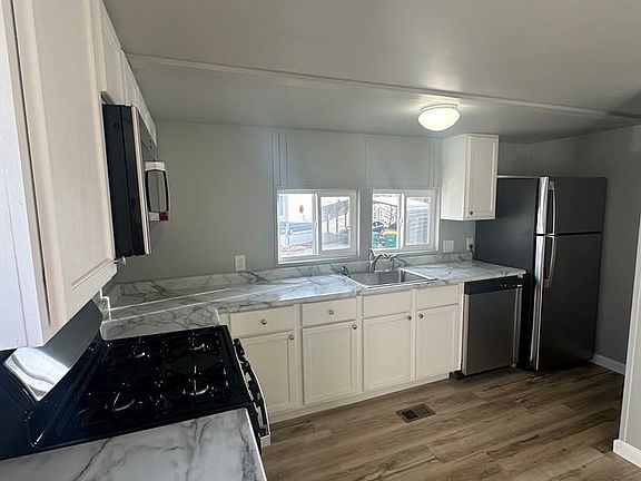 Charming 2 bed 1 bath mobile home nestled in a pet friendly family park. Ideal for those seeing a cozy living space with outdoor appeal. This freshly updated mobile home has all of the modern finishes you can expect. Spacious, practical price point and best yet... financeable!! Lot rent is $950 a month. Grab your favorite realtor and see it today!!