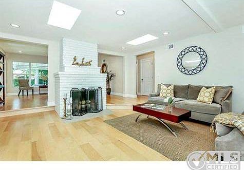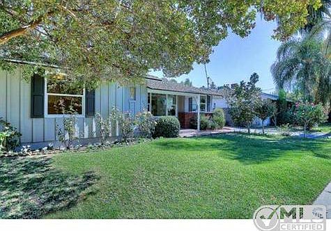 Beautifully remodeled traditional single story home nestled on a quiet cul-de-sac in Valley Village. You will be welcomed by the lush landscaping, the long driveway, and covered front porch. Once you step inside, you are greeted by a flawless open floor plan, where the formal living room, formal dining room, and family room, seamlessly flow into one and other, separated by a two-sided fireplace. The space is light and bright, featuring plantation shutters, skylights, and recessed lighting. The sleek kitchen offers custom cabinets, high-end stainless steel appliances, subway tile backsplash, modern countertops, walk-in pantry, and a breakfast bar with counter-height seating. A romantic master suite has a full bath with spa tub, and walk in closet; French doors to the backyard complete this lovely retreat. Charming backyard with large grassy area, jacuzzi and covered patio. features include 2-car garage, updated landscaping and hardscaping, crown molding, and wood floors. Must see!