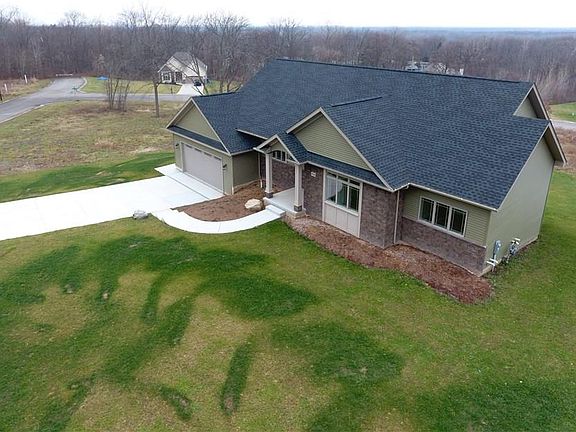 The Open Concept and Large Windows allow Sunset views from most rooms toward Toronto from your Brand New hillside Ranch. The great room features a cathedral ceiling, hardwood flooring, recessed lighting, gas fireplace with built-ins and allows access to the large elevated deck. High Ceilings throughout the home. First Floor Laundry. Granite kitchen with island, breakfast bar, Pantry, and loads of cupboard space. Direct entry from the garage into the generous mudroom with large coat closet. Need Additional bedrooms, Family or Game Room or Home Office? The Full, Walk Out basement has plenty of room for future living space- There's already a 320 Sq Ft Dry walled room started. Additional renderings available to spark your creativity. There's even a Lg. basement area that could be a wine cave ! Showings are limited to 1 agent and 2 primary buyers at any one time per Covid rules. ALL parties MUST wear face masks.