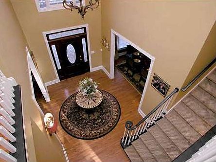 Scenic North Hall location in beautiful community of large lots. 1.5 acre level corner lot with circular drive and luscious landscaping. ALL NEW KITCHEN! just completed. Hardwood floors, two story foyer, massive master bedroom suite with private office. Spa bath with separate vanities, huge glass shower and Whirlpool jetted tub. All secondary bedrooms are good sized and share a Jack and Jill bath with 1 double vanity and 1 single. Spacious dining room seats 12+, bay window breakfast area, sunroom opens onto flagstone patio. Finished terrace level with fireplace, large den area, full bath, possible 5th bedroom, and garage area. Beautiful windows throughout. Very impressive home.