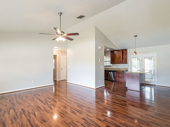 Please note, our homes are available on a first-come, first-serve basis and are not reserved until the holding fee agreement is signed and the holding fee is paid by the primary applicant. This home features Progress Smart Home - Progress Residential's smart home app, which allows you to control the home securely from any of your devices. This home is priced to rent and won't be around for long. Apply now, while the current residents are preparing to move out, or call to arrange a meeting with your local Progress Residential leasing specialist today. Water-view 3 bedroom, 2 bathroom home in Jacksonville, FL boasts wood flooring, a vaulted ceiling and an eat-in kitchen with granite countertops and a center island. The exterior features a 2-car garage and a screened patio overlooking a pond.