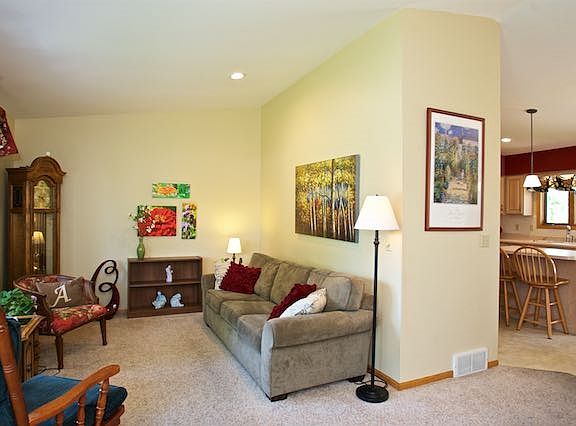 THE PERFECT COMBINATION of family-individual-indoor-outdoor spaces. Welcome your guests on the covered front porch or inside with the vaulted ceiling shared by the living-kitchen-dining areas. Kitchen offers an island & large panty which could also be used for main floor laundry. Garage is extra deep - so room for workbench or extra storage. Main level bedrooms are all well sized - and Master has an en-suite. Huge lower level family room w/ fireplace & access to the well landscaped back yard. 4th conforming bedroom and full bath perfect for guests or private retreat/office area and there is extra storage in laundry area. Ecobee thermostat & wireless/moveable room sensors help manage any hot or cold spots through out the home. With roof/furnace/central air all less than 8 years old, schedule your private showing sooner rather than later!