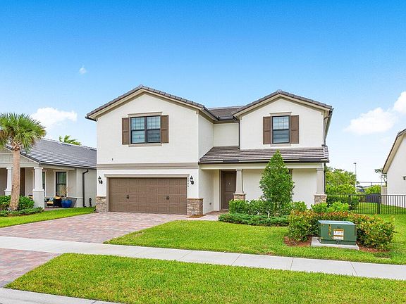 ** Most Recent SALE was $929,000 for same sq footage ** Citrus Grove model in The Fields of Lake Worth.. This 5 bed, 3 bath home, built in December 2022 contains over 2700 sq ft of living space, perfect for the whole family.. The downstairs features an open living, kitchen, & dining area.. Also downstairs are your primary bedroom & an additional bedroom.. As you head upstairs, you are greeted by an incredibly large loft space, which leads into 3 additional bedrooms w/ walk-in closets. The home is situated on an oversized, fenced in yard, just two houses away from the main clubhouse.. The clubhouse in the Fields features a resort style pool, fitness center, business center, outdoor basketball & tennis courts, & so much more!
