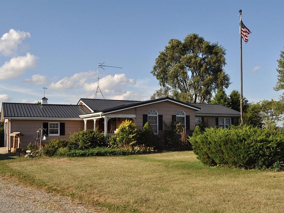 Enjoy country living in this ranch style home located on 3.228 Acres! Step inside to 2 bedrooms, 2 baths,living room with fireplace. full unfinished basement, a 13x16 ft deck, 2 car attached garage and new metal roof! The outbuildings consist of a 32x50 ft 2 story barn with hay loft, 42x80 ft machine shed with concrete floor and heated shop. Also a 23x72 ft open front building for livestock or machine storage with the Perimeter having vinyl fencing suitable for livestock.