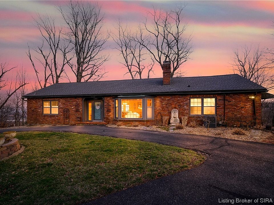 Fabulous home with 5 Acres in the Knobs! This exceptional home boasts numerous significant updates while preserving its original character and reflecting the era of sturdy, high-quality construction. Situated on a picturesque 4-bedroom, 3-bathroom ranch with a fully finished walkout basement, it offers one of the most beautiful skyline views. Step into a stunning living room with a gas fireplace, a formal dining room, and a breathtaking view from the dining table. The fully equipped kitchen includes custom cabinets, granite counters, a spacious pantry, and a complete set of appliances for easy entertaining or everyday meals. The primary bedroom is awe-inspiring with vaulted ceilings, cedar beams, a fireplace, and distinctive baked ceramic red brick flooring. The unique bathroom offers ample counter space, a sunken jet tub, an electric fireplace, a walk-in closet, and new flooring. Two bedrooms and a guest bath completes the 1st floor. The basement offers recreation and media area, wet bar, one bedroom, a full bath and all new flooring. Step out onto the spacious deck and savor this slice of surreal paradise. Additionally, there is a 1.5-car garage and a charming shed with heating/air conditioning for your personal retreat or hobby space. Sq ft & rm sz approx.