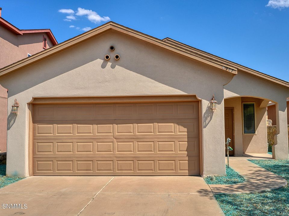 Welcome to this sweet 3-bed, 2-bath home that blends comfort, convenience, and charm! Step inside to find tile floors throughout the main living areas and bathrooms, offering a clean and modern touch, while carpeting in the bedrooms adds warmth and comfort. The open-concept layout provides a smooth flow between the kitchen, dining, and living areas. The kitchen offers functionality and style, while the attached 2-car garage ensures plenty of parking. Out back, enjoy a cozy covered patio in a low-maintenance yard. Built in 2013, this home offers modern construction with thoughtful touches. Whether you're a first-time homebuyer, downsizing, or looking for a low-maintenance investment, this home checks all the boxes. Located near shopping, medical facilities, scenic hiking trails, and just a short drive from the iconic White Sands National Park, you'll love the lifestyle and access this location provides. Don't miss your chance to call this charming home yours!