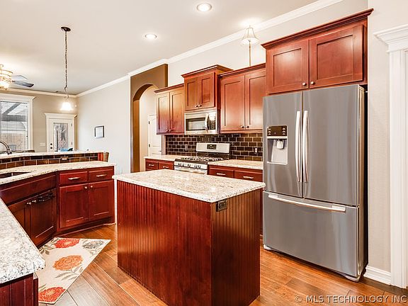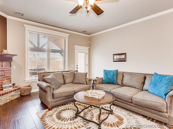 Immaculate Home, 2014 winner of Tulsa Parade of Homes. This stunner offers 3 bed/2.5 bath, 2 gas fireplaces, large kitchen and living room, floored attic with an in-ground storm shelter in the garage, 10' ceilings, 1 yr home warranty offered by seller.