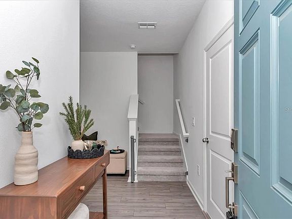 One or more photo(s) has been virtually staged. One or more photo(s) has been virtually staged. Welcome to this stunning new end unit Townhome with 3 Bed/2.5 Baths/1-Car Garage. First floor features a covered lanai, an attached 1 car garage, powder room, open concept kitchen that flows into the gathering room and dining area. Kitchen features quartz countertops, stainless steel appliances and spacious pantry closet. On the second level you'll find 3 bedrooms, 2 bathrooms, a loft and a laundry room with new washer and dryer. The spacious master bedroom suite features double doors, a dual sink vanity, walk-in shower and a generous walk-in closet. Bedrooms 2 and 3 share a Jack & Jill bathroom. This townhome community is maintenance-free. Come and see this ready to move-in 2 story Townhome that is conveniently located close to shops, schools, restaurants, medical facilities and downtown square.
