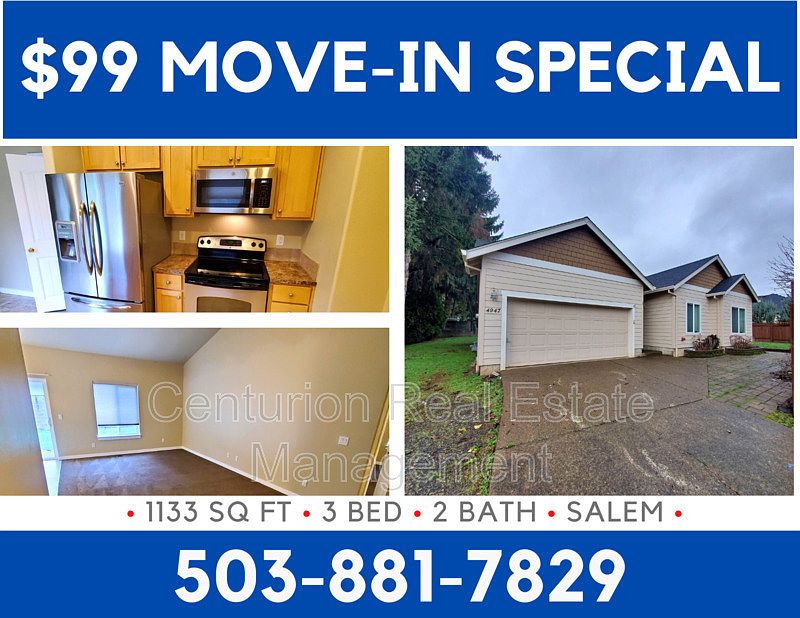 MUST READ MUST READ 1. The application process normally takes 1-3 business days. 2. Must see the property physically before the deposit is made. 3. If you have a pet, ESA or you don't have a pet you must register at https crem.petscreening.com 4. Apply to one property at a time. - Address: 4947 Textrum St. SE Salem, OR 97302 Property Type: Single Family Home Rent: $2,195/MO Deposit: $2,100 (On Approved Credit) Application Fee: $55/ per adult 18+ Tenancy: 14- 18 Month Lease Bedrooms: 3 Bathrooms: 2 Sq. Ft: 1133 Stories: 1 Story Owner Paid Utilities: None Tenant Paid Utilities: Tenant is Responsible for all Utilities Pet Policy: No Pets Ready Date (tentative): AVAILABLE NOW! Viewing Status: SCHEDULE SELF-VIEWING TODAY! Amenities Included: Fridge, Stove/Oven Heat Type: Gas Laundry: Washer and Dryer in Unit Parking: Driveway/Garage Garage Capacity: 2 Car Garage Landscaping: Tenant Responsibility Note: Non-Smoking Property Pet Policy: Notice to all residents and applicants, everyone must complete the screening process. This is not only for pet and animal owners; it applies to residents and applicants who do not own pets. The pet policy includes caged animals and pets. Additional deposits and monthly pet rents will vary; keep in mind that it is subject to the approval of your petscreening.com profile. You will not be moved into the unit without this completed. Prices are subject to change, we do not guarantee prices, items change, and errors occur. If there is a discrepancy between a price online and a price in the office, supervising property manager shall have the final say. *Due to overwhelming demand we may be unable to respond to your rental inquiry. INTERESTED IN THIS PROPERTY? Properties are on a self-showing lockbox and each listing specifies how it is viewed. Feel free to drive by the property to check it out. "This information is deemed reliable, but not guaranteed." Centurion Real Estate Management, LLC 1365 Commercial St. SE Salem OR 97302