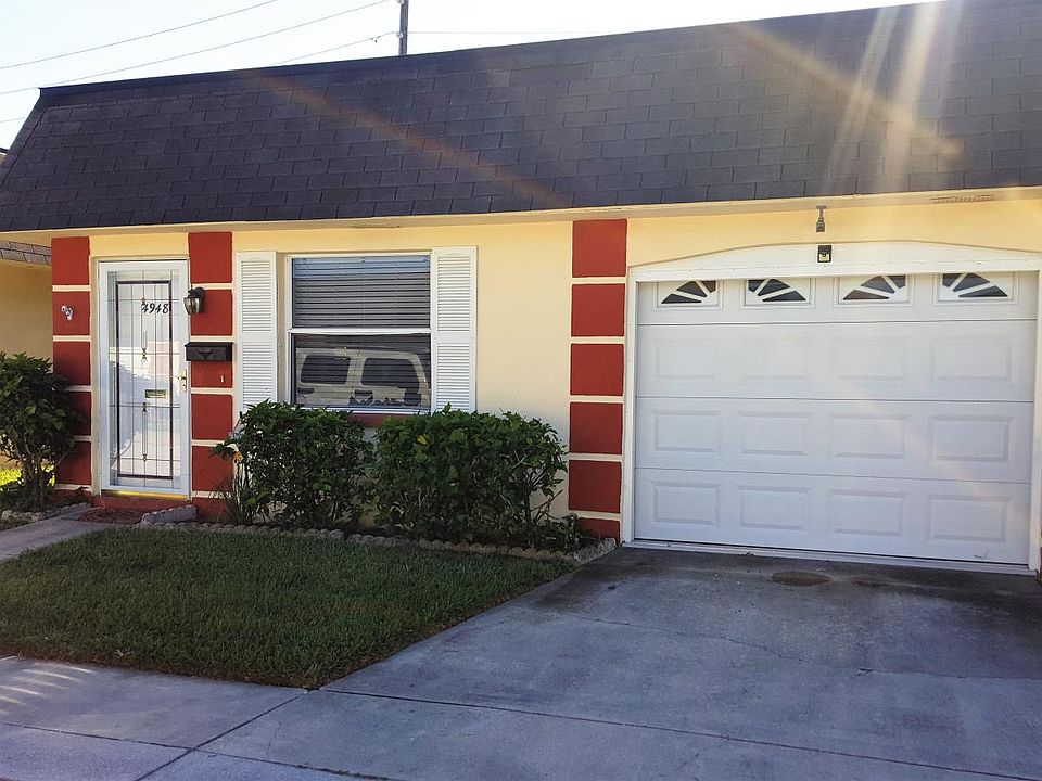 Unpack and enjoy! Great 55+ Villa located in New Port Colony. This home has been updated with ceramic tile, appliances, cabinets, and countertops, freshly painted. Comes with washer and dryer, garage door opener. Pictures speak a thousand words! The rent includes water/sewer, trash pick up, grounds maintenance and use of pool and clubhouse. Membership for Gulf Harbors Beach Club is available for additional fee. Walking distance to Southgate Shopping Center. ( $100 cap on utilities) For additional information callCharles 727-259-3988 Application Fee: $60.00 Per Person