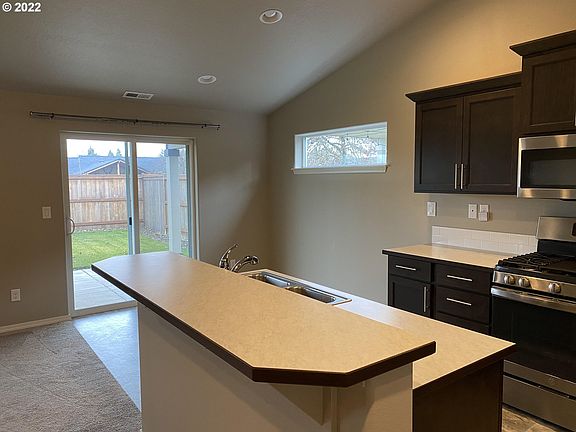Welcome Home to this Spacious & Bright 3 Bedroom 2 Bathroom Home with Slate Tile Entry. You will love the way this one level home feels with tall ceilings & the open concept. Roomy kitchen boasts gorgeous cabinetry & ss appliances with storage galore. Dual closets in primary bath. Dining room slider to backyard w/covered patio. Quiet neighborhood with private fenced backyard. Front & Back Sprinkler system. Nice bicycling/Walking path close. Easy commute to the McKenzie Recreation area. Must See!
