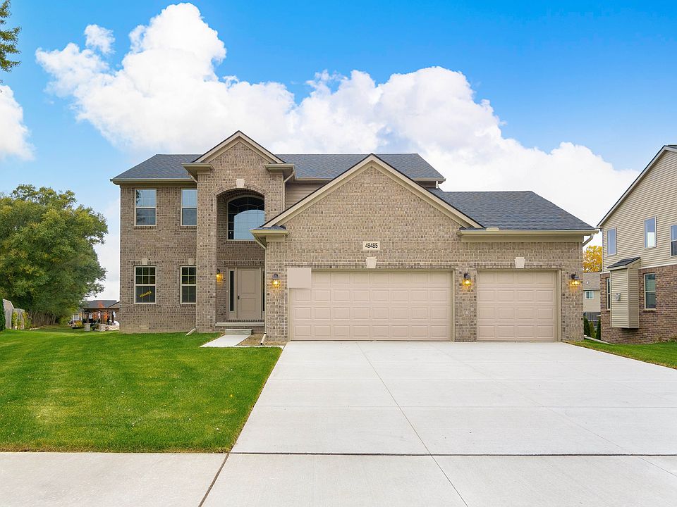 4-bedroom, 2450 Sf. colonial w/ a 3 car gar & daylight basement! Spacious kitchen and island that comes with a 9" overhang, granite countertops, ceramic tile floor, recessed lighting, staggered cabinets with soft close drawers and doors. In the great room you have a gas fireplace with a mantle and stone surround, recessed lighting and a ceiling fan. in the study you have crown molding and wainscotting. With 4 bedrooms upstairs, 2 full bathrooms, there is plenty of space in the home. The master bathroom has two sinks with a separate soaking tub and shower. The main bathroom has one sink, ceramic tile behind the bathtub with an accent strip for decoration. Throughout the rest of the home you have a 2-story brick covered porch, mud room lockers, crown molding in the foyer/upper hallway, bronze door trim throughout, bronze lighting package, box newel post bay window at nook, central air and much more.