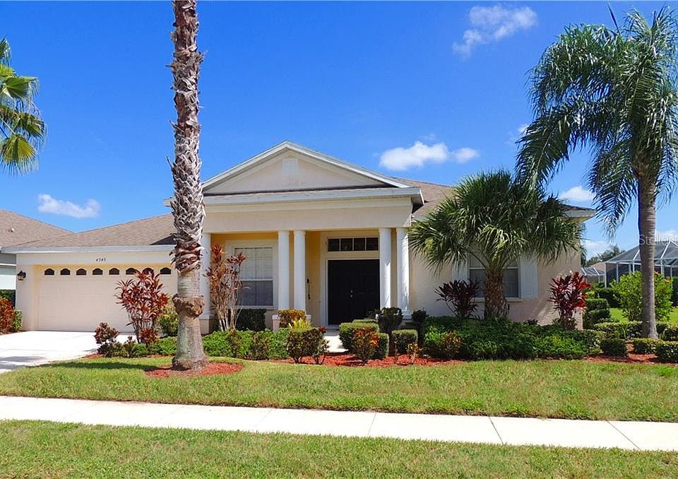 A full 5 bedroom, 3 bathroom, heated pool home, situated on a fabulous lakefront lot. Enter through double doors to a spacious tiled foyer. At the front of home is the 5th bedroom that could easily be used as a office. Beyond the foyer is a spacious Living Rom / Dining Room area with views of the pool and lake beyond. The kitchen features an island, nook area and tiled breakfast bar. The family room is spacious featuring tiled floor and offers views of the pool area. The bedrooms are split plan with bedrooms 3 & 4 on one side of home sharing the 2nd bathroom. The Master bedroom is large and leads to an en suite bathroom that includes garden tub, huge separate shower, his/her vanity areas, private WC and access to walk in closet. The 2nd bedroom is at rear of home and has easy access to the 3rd full bathroom that also doubles as a pool bathroom. The pool area has terracotta tiles on deck and ceramic tile on covered lanai. Note. the terracotta tile has covered holes for pool fence. A salt water system was added in 2019. Sabal Harbour has a very affordable HOA fee that covers a club house, community pool, tennis courts, basketball and more. The home can be purchased turnkey furnished for an additional sum.