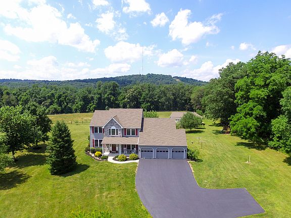 Bring your horses! This stunning and private custom colonial sits on over 8.5 ac w/natural beauty. 2 stry foyer w/hdwd flrs & flowing into DR, to the EIK that incl. SS appls, corian ctrs & tile backsplash & open to the 2 story family rm w/stone surround gas fireplace. 1st flr mstr ste w/FB & WIC. 3 add'tl BR's on 2nd flr w/FB. Garages, barns & pastures. Watch nature run through while enjoying entertaining on the rear deck & swimming!