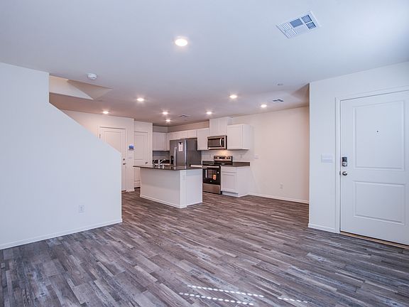 This DR Horton townhome combines style with accessibility to major highways. The kitchen is equipped with brand new stainless steel appliances, walk-in pantry, and a double sink. The open concept living area includes a cozy living room and a separate dining space, both featuring recessed lighting and blinds throughout. The spacious primary bedroom offers an en-suite bathroom with an integrated closet. Upstairs, the laundry room provides added convenience, and the landing at the top of the stairs offers extra space perfect for a small seating area. The garage provides direct access to the unit and comes with a mounted hookup for potential electric vehicle charging. Tempo Trails is an evolving community that features parks, walking trails, a community pool, and other recreational amenities. This home offers a great mix of comfort and convenience.
