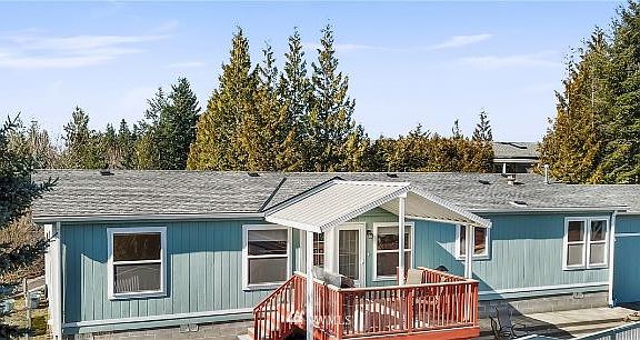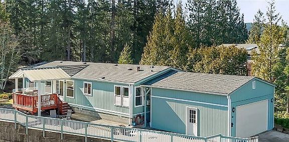 Rare opportunity for buyer aged 40 or older to purchase this light filled 3 bd 2 bath home in this age restricted development. Lake Padden estates is across the street from the beautiful Lake Padden recreation area. This manufactured home sits on one of the best lots in the entire park, perched on a hill with amazing light and privacy. Lovely territorial views from nearly every room in the house. Large pantry and built in storage. Low maintenance yard, yet there's room to gather on the patio and porch and an existing garden bed. This home has been well cared for, new roof in 2015. Double car garage. Low HOA dues of $85.00 a month + estimated water usage.
