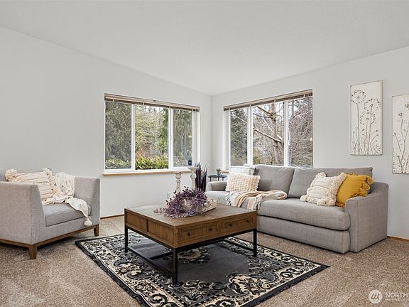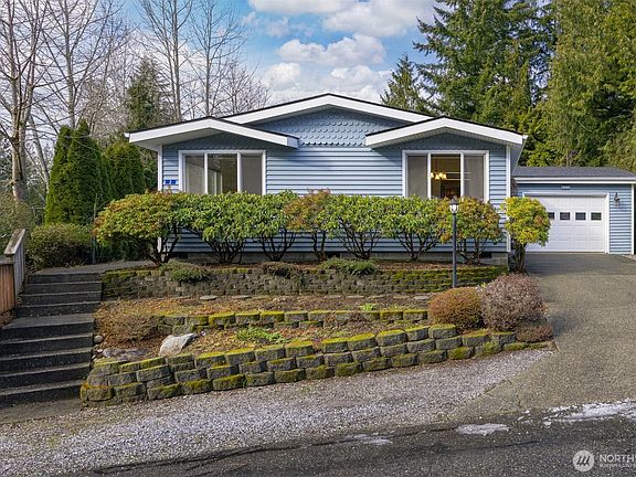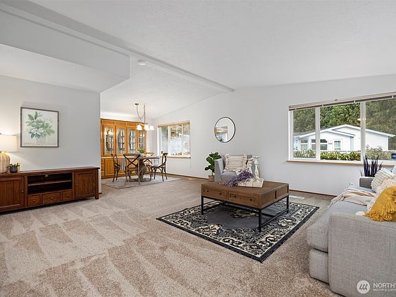 Beautifully updated 3-bedroom, 2-bath home in Lake Padden Estates, a sought-after 55+ community where you OWN your own land! Step into the radiant, open-concept living & dining area, where soaring vaulted ceilings & grand windows fill the space with natural light. Large kitchen opens to 2nd living room + laundry room. Primary suite offers spa-like retreat w/soaking tub, shower, double vanity, generous walk-in closet + hot tub on deck. Seller spent $45k on updates incl. new LVP flooring & carpet, fresh interior paint, new roof & crawlspace renovation for a move-in-ready feel. Enjoy a stunning backyard with a sprawling deck & lush, park-like private lawn. Trail next to clubhouse leads to over 100 Galbraith Mtn biking trails & Lake Padden.