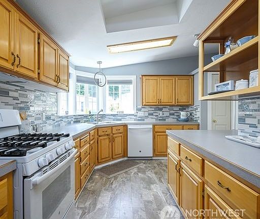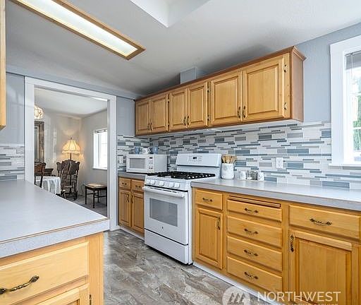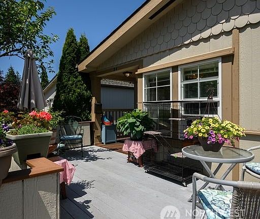 2 bedroom, 2 bath manufactured home in peaceful, desirable 55+ HOA community of Lake Padden Estates. Central gas heating and A/C. Functional L-shaped kitchen with abundant cupboards updated with glass wall tiles, laminate flooring, newer gas stove and dishwasher. Separate Breakfast Nook. Open floor plan with vaulted living room ceiling. Higher handicapped toilets in bathrooms. Trex front deck with ramp from driveway for easy access. Roof has been replaced. Backyard views greenbelt. Oversized single car garage. Backyard storage shed. Proximity to: Lake Padden walking trail & water recreation, Golf course, Galbraith Mt. Bike trails, historic Fairhaven district and harbor. Subject household billed $40 monthly by HOA for averaged water usage.