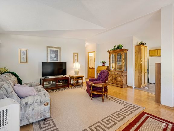 Lake Padden Estates is an owner occupied 55+ community. Unit #43 is "just right", not too big, not too small. This 2 bedroom, 1 3/4 bath home lives larger than its square footage with open living and dining areas and vaulted ceilings. Enjoy the private patio area that overlooks a lush green space behind the house. A convenient extra-long single car garage is attached. The house has been extremely well maintained and is move in ready. Residents of Lake Padden Estates have access to a community clubhouse, RV parking and trails. This development is across from Lake Padden Park and is a short drive to all that Bellingham has to offer!