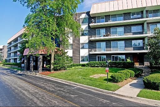 FABULOUS TOP FLOOR CORNER CONDO WITH SOUTHWEST VIEWS OF COURTYARD AND SINGLE FAMILY HOMES. NEW CARPET, PAINT, KITCHEN FLOOR AND MORE! SLIDERS FROM LIVING ROOM AND KITCHEN TO LARGE BALCONY. GREAT CLOSET SPACE. SEPARATE DINING ROOM. MASTER BATH HAS DRESSING ROOM AND DOUBLE SIZE WALK-IN SHOWER. STORAGE LOCKER. HEATED GARAGE. ACROSS FROM OLD ORCHARD. FRESH, LIGHT, AND AIRY.
