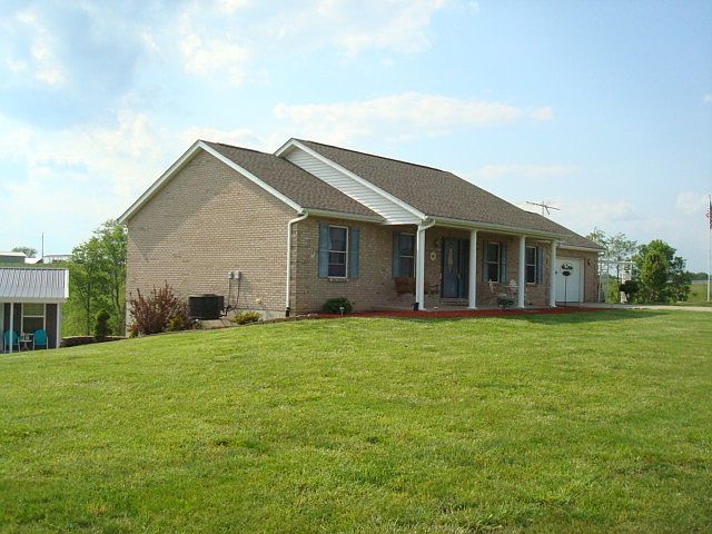 3BR/3BA-2 car garage,all brick ranch home on 12.94 Acres. Don't stop there!36x60 concrete floor garage,24x36 garage,12x20 building w/HVAC,16x40 Camper storage area! So much! Deck presents viewing space,pond offers fishing,fields offer mini-farm. Finished basement for entertainment or additional living space,walk in closets. Separate living,dining, and kitchen areas.Office/study space available!