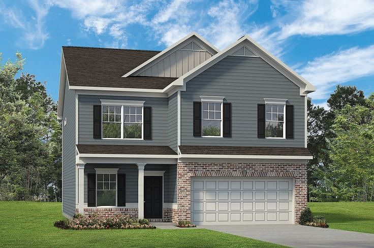 The Harrington plan At Morgan Meadows by Smith Douglas Homes. .Based on our top-selling plan, the Harrington delights with its massive second-floor owner's suite privately tucked away on the same level as its three additional bedrooms. The first floor impresses with an open concept family room. The kitchen, equipped with gas appliances has a large center island with granite counters, and sink and opens to the breakfast area which also leads to the rear patio, perfect for entertaining. Off of the foyer entry is a study with beautiful French doors. The massive owners suite on the second floor includes easy extra access to the laundry room directly. The owners bath has double bowl sinks, a soaking tub, and shower with glass door while the additional three bedrooms share the second bathroom off of the landing area at the top of the stairs.