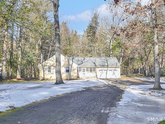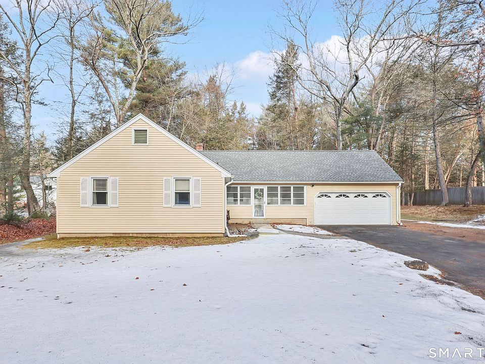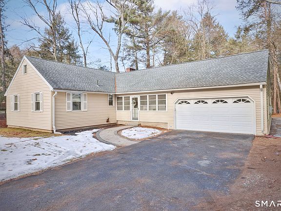 Welcome to this charming L-shaped Ranch situated on a .91-acre lot conveniently located just minutes from shopping, dining, and entertainment. This well-maintained 3 bedroom, 2 full bath home features hardwood floors throughout, central air, an enclosed front porch, and a 2-car garage - offering both comfort and functionality! The kitchen includes a breakfast bar and opens seamlessly to a sizable dining room with a walk-out to a large deck-perfect for entertaining or relaxing while overlooking the private backyard. Spacious living room with fireplace, full bathroom with tub/shower, and three bedrooms complete the first level. The walk-out lower level provides an abundant amount of space - with 600 sq ft of heated living space ideal for a family room, home office, playroom, or multi-purpose area. The lower-level fireplace can serve as a center point to allow for flexible layout options in creating two separate spaces. The old flooring has already been removed, giving a blank canvas to make it your own. Lower level also offers an additional full bathroom with stand-up shower, laundry, and a large utility room with storage and workbench. This home offers ample storage space, versatility, and a desirable location-an excellent opportunity to join the Simsbury community!