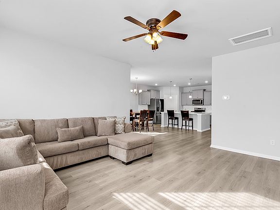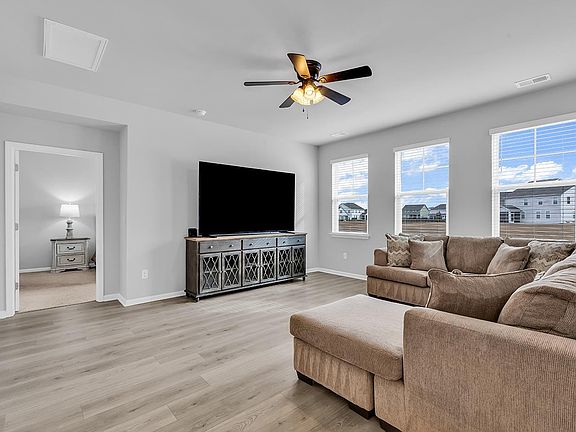 Nestled in a sought-after south end neighborhood, this stunning 4 bedroom, 2 bath home with a 2 car garage offers picturesque lake views and has a thoughtfully designed floor plan. The 4th bedroom has French doors lead to a versatile space that could be used as flex room, perfect for a home office, playroom, or guest space. Soaring 9-ft smooth ceilings and luxury laminate flooring flow through the main living areas. The kitchen features stainless steel appliances, quartz countertops, recessed lighting, a large pantry, and fully trimmed cabinetry. Natural gas powers the range, a tank-less hot water heater, and heating for efficiency and comfort. The primary suite boasts a huge walk-in closet and a luxurious en-suite bath with two large vanities and a 5' shower. Enjoy all the many resort style amenities the Farm has to offer; 2 pools, indoor pickle-ball court, fitness center, playground, clubhouse, and fishing pier. This home's location offers unparalleled convenience, just minutes from shops, entertainment, fine dining, golf courses, water sports, and the beautiful pristine beaches of the Atlantic Ocean. Come find your own place in the sun today! Square footage is approximate and not guaranteed. Buyer is responsible for verification.