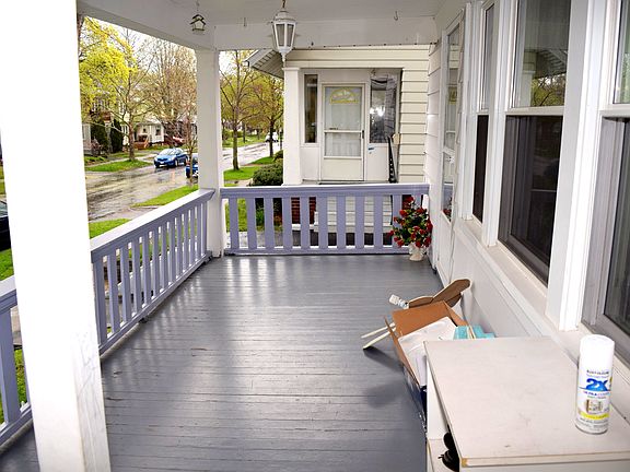 Wonderful home with large living room and formal dining room featuring original arts and crafts windows, fireplace and mantel. Spacious eat-in kitchen and 1st floor half bath. Master bedroom has a huge closet plus additional door to 3rd bedroom which can serve as a dressing room or office suite. Awesome open front porch plus 2nd floor enclosed porch. Low maintenance exterior and fully fenced yard. central air, basement glass block widows. Detached garage with opener.