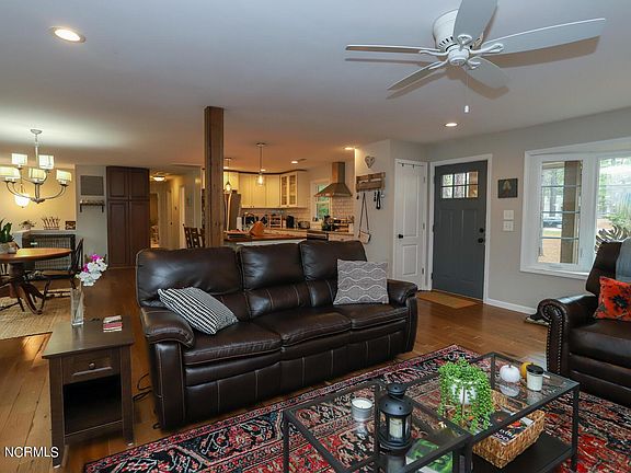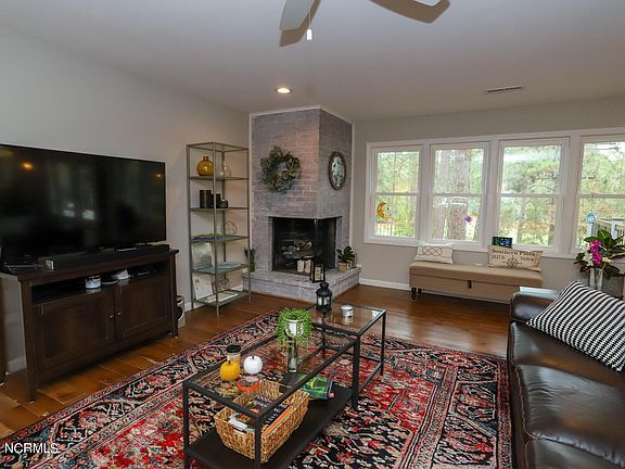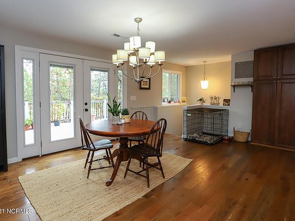 This charming home is nestled among the pines on an all-natural lot along the 8th fairway of the Pine Needles golf course, just minutes from downtown Southern Pines. The completely renovated home has a wonderfully open design and a rustic feel with wide plank, red oak floors in the open living room, dining area and kitchen, lovely corner wood burning brick fireplace in the living room and exposed wood beams in the family room and a guest bedroom on the lower level. The kitchen features custom white wood cabinetry, quartz countertop, subway tile backsplash, large custom island with butcher board countertop, oversized stainless steel sink with pulldown faucet and breakfast bar. Double glass doors with sidelights open to a big back deck with views down to the golf course and large back yard. A spacious master suite is carpeted and has walk-in closet. The master bath features a double sink vanity with wood cabinetry and marble countertop, and a step-in tile shower. The main level also includes a guest bedroom, full bathroom with furniture-like single sink vanity, lovely tub/shower with subway tile surround and tile floor, and the laundry room. A full lower level has a spacious family room with sliding glass doors that open to a covered patio, three bedrooms, a full bath and two storage closets. This home is in great condition and won't last long! 24 HR. NOTICE FOR SHOWINGS.