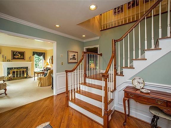 Classic and Elegant describes this spacious five bedroom home with over 4,400 sq. feet of living space PLUS a huge finished gameroom. Situated on 4+ level acres, enjoy the beauty of a park-like setting without leaving the privacy of your home. Tasteful appointments throughout including fresh paint and carpeting, custom moldings, gorgeous rich hardwood flooring. Chef's delight kitchen includes high end stainless steel appliances, 5 burner gas cook top, wall oven,warming drawer, granite counters. Open to the family room with gas fireplace, wet bar and wall of glass doors leading to patio. Dining room offers ample space for all your furniture pieces.The gracious living room has multiple windows filling the space with light and a fireplace. Private den provides built in cabinetry. Back hall with 2nd staircase. Master en-suite with tray ceiling, 2 walk in closets, spa-like bath. 4 additional bedrooms, one could be 2nd en-suite master. Stunning private property, yet convenient to all!