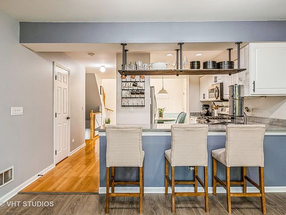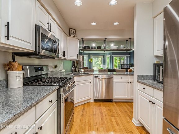 Private end unit w/ beautiful nature views in sought after Foxmoor~This updated 2 story unit checks all the boxes to a buyer's wish list!~Open concept~Sun drenched white kitchen w/ quartz countertops & new SS appliances~Hardwood flooring~ Recessed lighting~Fresh neutral paint colors~Spacious family room w/ fireplace~ Newer carpeting~New master bath spa shower~ Designer window treatments~Full finished English basement w/custom bar, full bath & huge laundry room~ Several big ticket updates too!! New roof & sump pump 2021~2019 Nest & water heater~2014 furnace & windows~ A Hop & a skip to neighborhood park w/ playground, soccer & baseball fields & picnic grove~Minutes to town & train