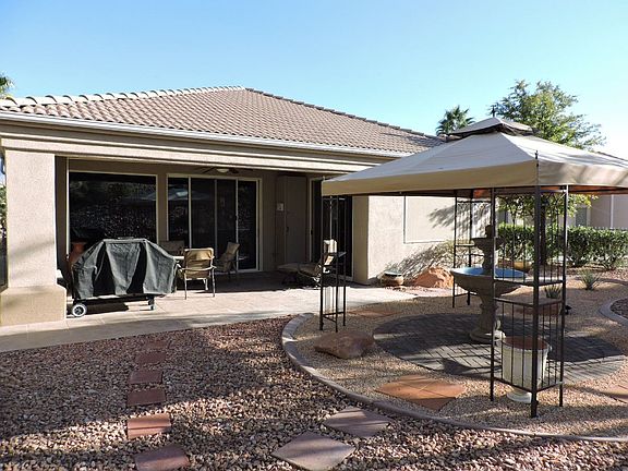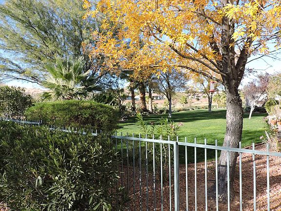 This mint condition home is a must see. Recently painted exterior. Home boosts 8 foot doors, two bedroom and two baths, living room, kitchen/dining with plenty of cupboards and storage. Bosch Kitchen Appliances. Vaulted ceilings with an excellent floorplan. Natural colors with lots of tile and high end carpet. Large laundry room with plenty of storage. Ceiling fans in master bedroom, living room and patio. Additional Storage cabinets in Garage and Patio. Great desert landscaping with no maintenance yard up keep. A focal point in the beautiful backyard is the water fountain and the property in the view of the golf course. Monthly pest control is included in the HOA. A must see for qualified buyers.