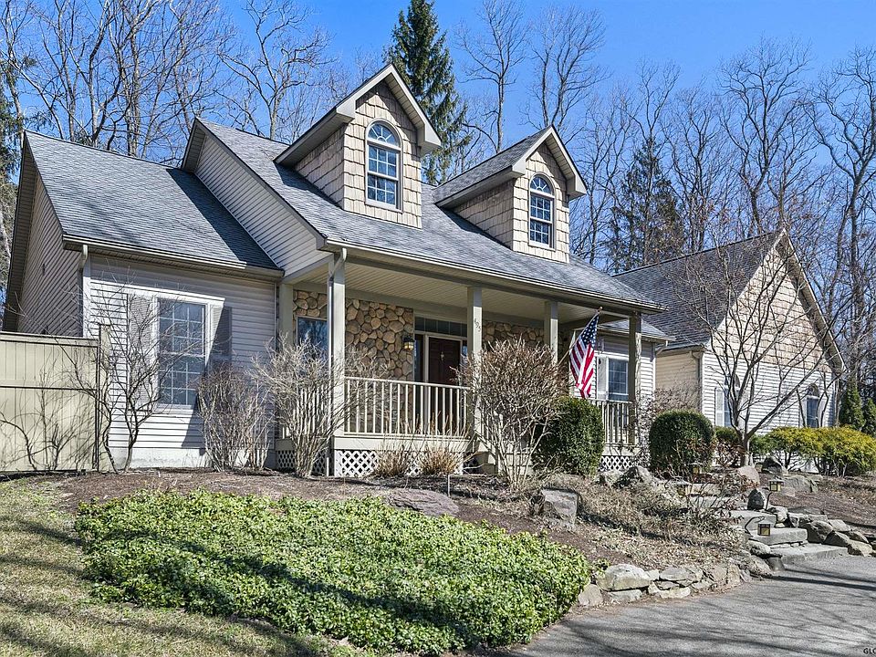 Check those boxes off! Open concept single floor living, 4 bedrooms, 3 full baths, 3 plus garage spots, formal dining room, full finishable basement, screened porch and a private setting. Bonus features - FIOS, 1st floor laundry room, fieldstone gas fireplace, circular driveway, 5 zone sprinkler system and enough garage space to store bikes, kayaks and 4 wheelers. Bonus for the car aficionado - double metal doors from the heated garage to basement with workbench. Naturally beautiful with vaulted ceilings and french doors to the deck surrounded by private woods. On top of all that a huge rainbow bedroom! Backs up to the Colonial Acres Wildlife preserve. Working from home? Did I mention FIOS!!
