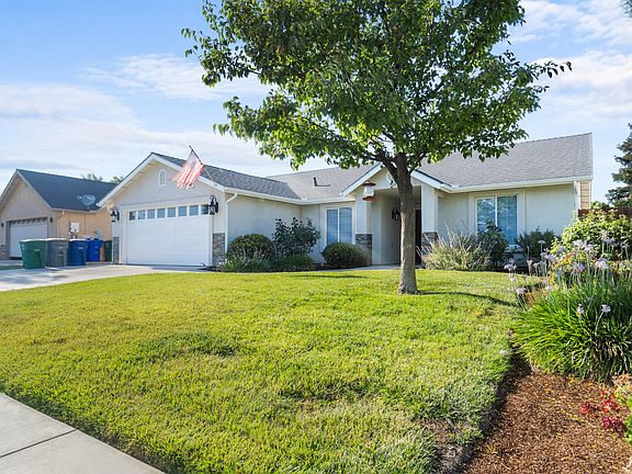 Discover the appeal of living in highly desirable Exeter! This stunning 4 bed, 2 bath residence offers a finished 2-car garage and open living spaces perfect for entertaining. The ideal split wing floor plan ensures privacy and convenience for all. The newer updated kitchen is an entertainer's delight, featuring a stylish tile backsplash, raw edge granite counters, and an apron sink. Enjoy casual meals at the breakfast bar or the adjacent breakfast nook for formal sit down dining. The kitchen seamlessly opens to the living room, where high vaulted ceilings create a bright and spacious atmosphere. Retreat to the master bedroom with its own slider to the backyard, a generous walk-in closet, and a private bath with his and her sinks. The guest bath boasts an updated vanity with soft-close drawers and cabinets for added luxury. Two guest bedrooms share a wing with the guest bath, while an additional guest bedroom, laundry room, and the master suite occupy the opposite wing for maximum privacy. Step outside to the backyard, perfect for entertaining with a covered patio, concrete on the side, and a gas line ready for your grill. This home is the perfect blend of comfort and style, ready for you to make it your own!