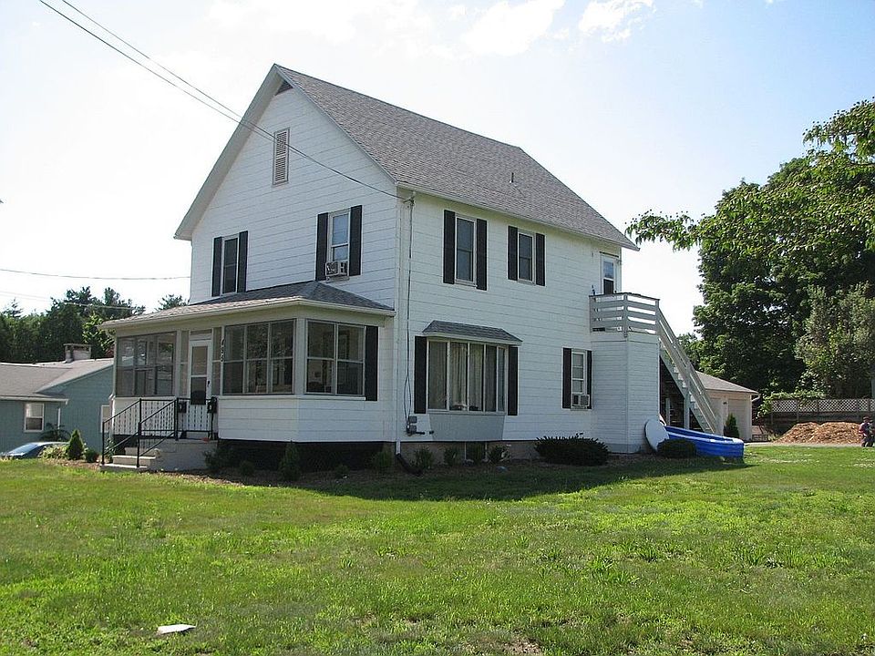 TWO FAMILY HOME, TWO BEDROOM APARTMENT UPSTAIRS, THREE BEDROOM APARTMENT ON FIRST FLOOR, NICE ENCLOSED FRONT PORCH, TWO CAR GARAGE, GAZEBO, FLAT CORNER LOT THAT COULD BE ZONED BUSINESS, THE TENANTS ARE PAYING $775 PER APARTMENT AND THE GARAGE IS CURRENTLY RENTED FOR $140 PER MONTH.