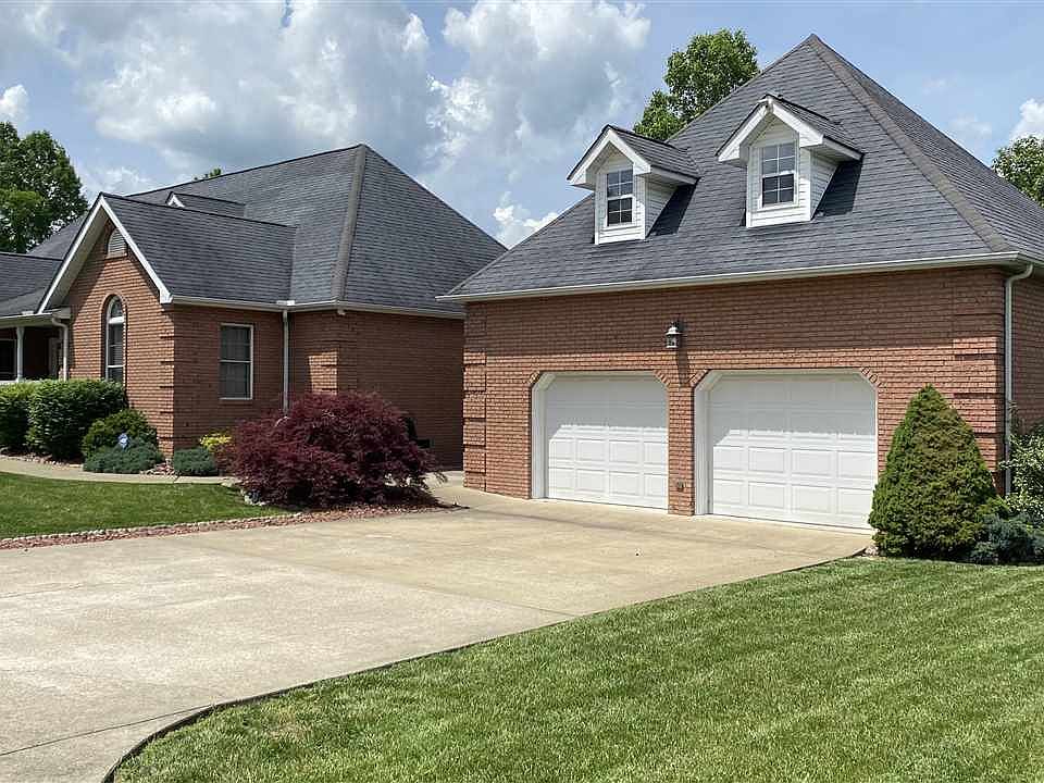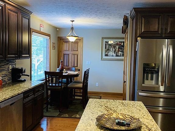 One floor brick home with two car detached garage. Relaxing covered front porch, or sit by your above ground pool. House sits on over an acre. New kitchen in 2019 with new cabinets, counters, hardwood floors, oven, microwave, and gas stove top. New counter tops in both baths, and new tile flooring, new vanity in master bath, new HVAC in 2020, new hot water tank in 2019, new washer, dryer and Refrigerator in 2018, and new carpet in two bedrooms. Lots of closets, 6 panel doors throughout, sun room with beautiful views.