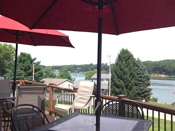 Sit back and enjoy the panoramic views of the lake from the large deck of this newly-remodeled, raised ranch home. Turnkey ready, this home's location boasts a 5-minute walk to the beach, park, and launch. The recently remodeled kitchen and bathrooms feature upgrades including granite, ceramic tile, wood plank laminate flooring, a soaking tub, under-cabinet lighting, and a unique kitchen storage.