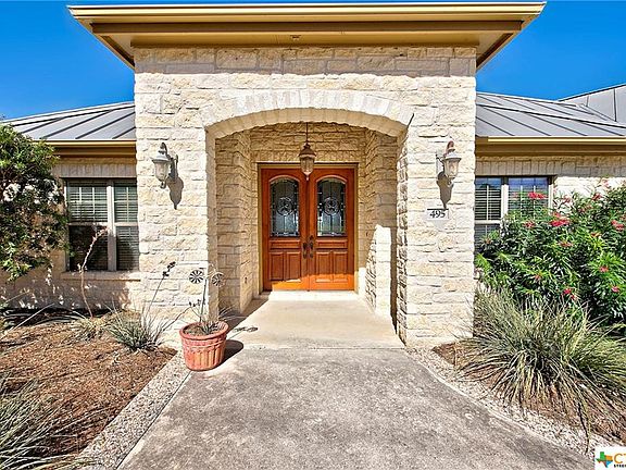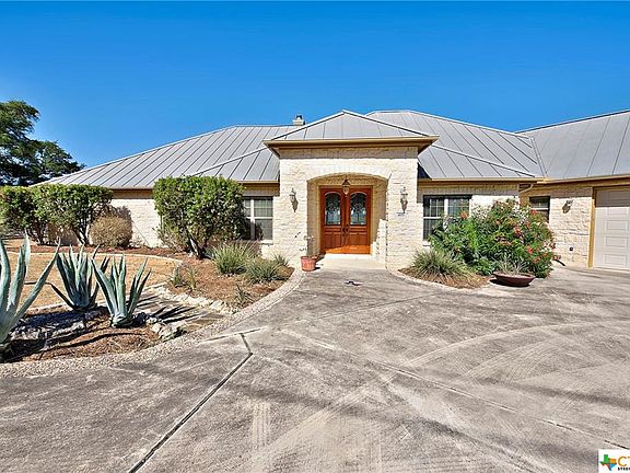 Looking for that million dollar Hill Country view? Indeed a rare opportunity to find 10 acres in New Braunfels and be so close to town. This roomy one-story custom home is packed with upgraded features both inside and out. Oversized master bath and bedroom with separate sitting room. Soaring ceilings in the great room with wall to wall windows. Fully equipped chef's kitchen with SS appliances. Expansive covered patio and decking, only steps away from the custom pool and pond. This is the one!