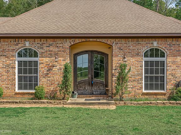 Act fast—this one-of-a-kind property won’t last long! Tucked away on 10 peaceful acres, this private homestead offers the perfect blend of open space and wooded privacy, with approximately 4 acres cleared and the rest enveloped by towering, mature trees. Whether you’re looking for serenity, space to roam, or the ultimate place to entertain, this property delivers it all. The custom-built home features 3 generously sized bedrooms and 2.5 bathrooms, with NO CARPET anywhere—enjoy low-maintenance-stained concrete flooring throughout, combining style and functionality. Two spacious living areas offer flexibility, including a cozy main living room and a secondary entertaining space complete with a custom built-in bar—perfect for game nights or hosting friends. The kitchen is a true highlight, showcasing custom cabinetry, gleaming stainless-steel appliances, and expansive granite countertops that provide ample prep and serving space. Architectural details shine in this home, especially with the stunning ceiling treatments in both the primary suite and bar room, adding character and craftsmanship throughout. Step outside to a backyard designed for relaxation and fun. The fully equipped outdoor kitchen invites gatherings and cookouts, while the beautiful, stocked pond creates a peaceful retreat right in your own backyard. Pet owners will appreciate the built-in dog bath in the spacious laundry room, and the washer and dryer are included for your convenience.
