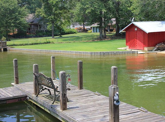 Two bedroom home sitting on large deeded lot affords stunning views of Lake Harding! Play on the lake all day with easy access from dock with floating pier or boat ramp within close proximity to home! After your long day on the lake, head just down the street to the local restaurant or dine at home to enjoy the spectacular view of the lake your table offers! Large living space with fireplace!