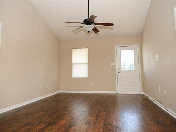 Move in Ready! Covered front porch with Extended back patio; Brand new carpet in all three bedrooms with Walk in closet in Master.