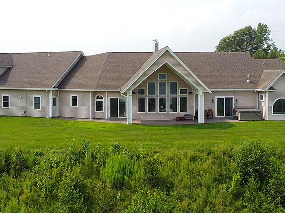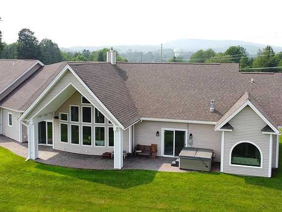 Custom built contemporary home situated on 3 acres overlooking the South Bay of Lake Memphremagog. The main living area is one level and consists of an open concept kitchen, dining and living room, 3 bedrooms and 2.5 baths. Above the heated 3 bay garage (42'x30') is another finished space, great for an in-law apartment, office, or a second family room. The home features high end finishes throughout to include radiant heated ceramic tile flooring throughout the main level, a luxurious custom kitchen with heated granite countertops, tiled backsplash and stainless appliances. The primary suite features a grand bathroom with a tiled walk-in shower, jacuzzi soaking tub that looks over the gorgeous view and a walk-in closet. The second bedroom also features an en suite complete with a tiled walk-in shower. Outside, be sure to enjoy the large, level lawn space, stamped concrete patio and hot tub. Situated nearly at the end of a dead-end street, yet still within walking distance to downtown Newport, Lake Memphremagog and all town amenities.