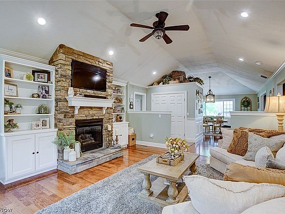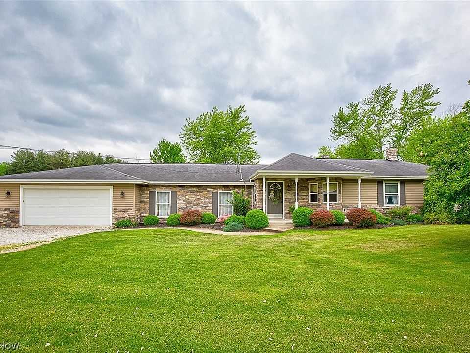 Welcome home to 495 Mishler Road, a gorgeous 4 bedroom 3 full bath ranch located on 1+ acres in Suffield! When you pull in, you will instantly notice the stone detail and newly landscaped yard-meticulously maintained! Inside you will fall in love with the open, airy feel this home gives with large vaulted ceilings spanning the length of the house. A beautiful living room features a gas stone-faced fireplace with built-in shelving on each side. The new hard wood floors continue into the huge dining room overlooking your private, large backyard with natural light pouring in from each window. The newly remodeled kitchen features white cabinetry, stainless steel appliances and brand new quartz countertops and tile backsplash (2021). An additional living room/playroom/office space is centrally located, give access to the backyard and truly can be a great space for any buyer's needs! Down the hall, you will find a laundry room 3 bedrooms and 2 full bathrooms- 1 connected to a bedroom (great for a guest bedroom or kid's suite)! On the other side of the house is a massive master suite featuring his and her closets, private master bathroom and a tile shower. A mud area off the over-sized 2 car attached garage and plenty of closets and storage space complete this ranch. Outside you will find a concrete stamped patio with a fire pit, deck, hot tub, heated pool, and lake views/access! Imagine your summer nights in you very own backyard oasis! The craftsmanship on this home is one that truly needs to be experienced! Updates include new AC and furnace 2019, new hot water tank 2019, new well pump 2024, new sump pump and back-up battery 2023, master bedroom addition 2009, hardwood floors/gas fireplace/built-in 2015 and more! Call today to schedule your private showing!