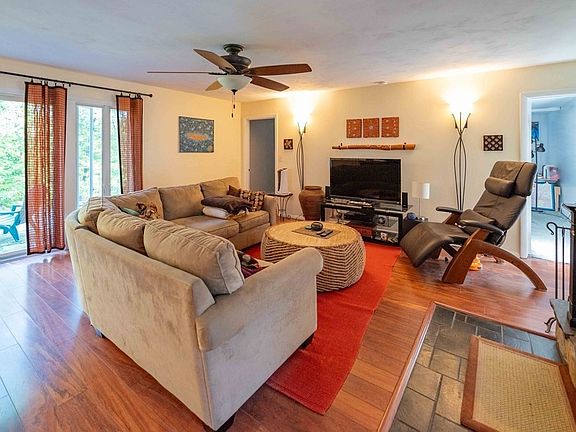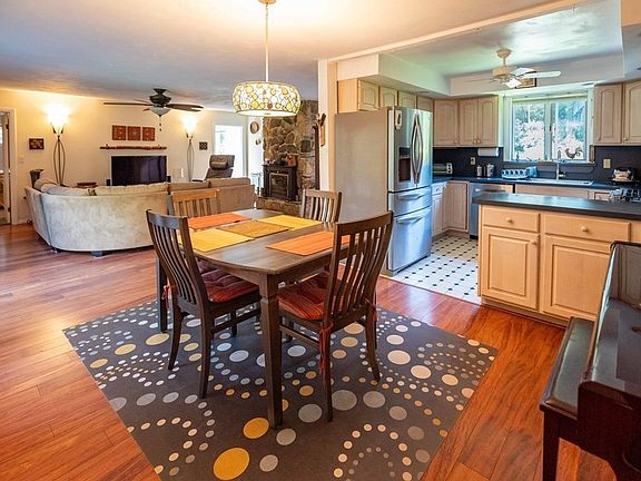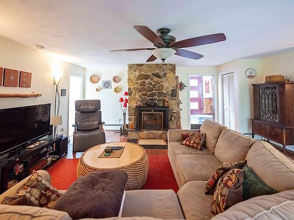 The perfect blend of space, nature & opportunity with this special 4-bdrm 2-bath contemporary home, situated on sprawling 3.6-acres straddling Sunderland/Montague. Nestled back this property offers an expansive zen yard & proximity to conservation land. Embrace your green thumb w/raised garden beds, a versatile barn (formerly for horses) & charming chicken coop, opening up exciting possibilities. The 2-car garage, once a sawmill, generously accommodates your storage needs. Warmth radiates from the beautiful stone fireplace, which graces the open living-dining area, creating a cozy ambiance for year-round enjoyment. The efficient kitchen boasts stainless steel appliances. Main level has 3 bdrms + full bath completing the inviting 1st floor, offering versatility. Ascend the stairs to discover the expansive 24' x 24' primary suite with spacious walk-in closet & full bath for comfort -private exterior balcony. Step outside to the Goshen stone patio w/ tranquil pond feature. BY APPT ONLY