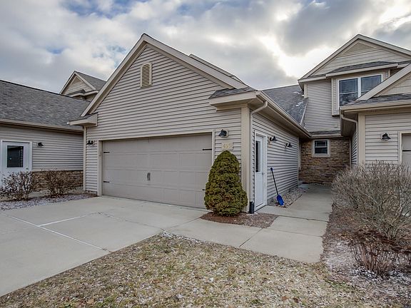 Move in ready condo on the Flat River. Two bedroom 2.5 bath, living room with cathedral ceiling and fireplace, deck on the back of the unit with French doors overlooking the river. All appliances are included. Central air, main floor master suite, attached two stall garage - lots of extra's . Association fee includes : underground sprinkling, lawn and landscape care, snow removal, and insurance on the condo.
